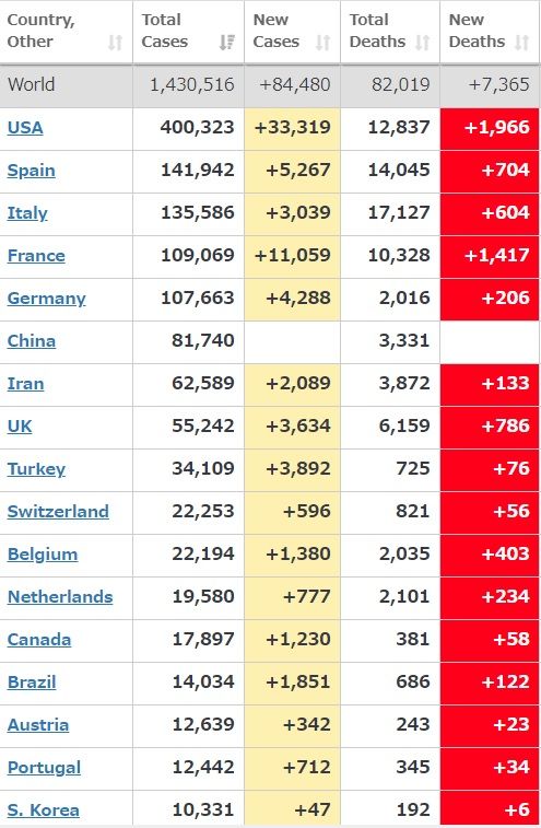 世界の死者8万人、このうち独は2千人だが他は1万人超、