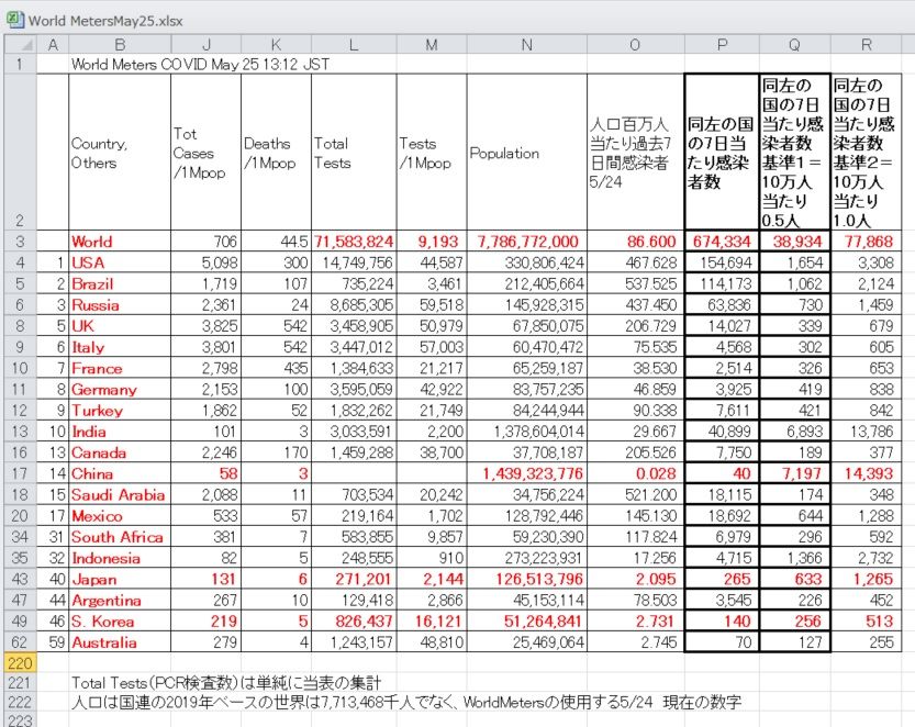 <一応の我が国の目安である・・・但しPCR検査数が矮小>