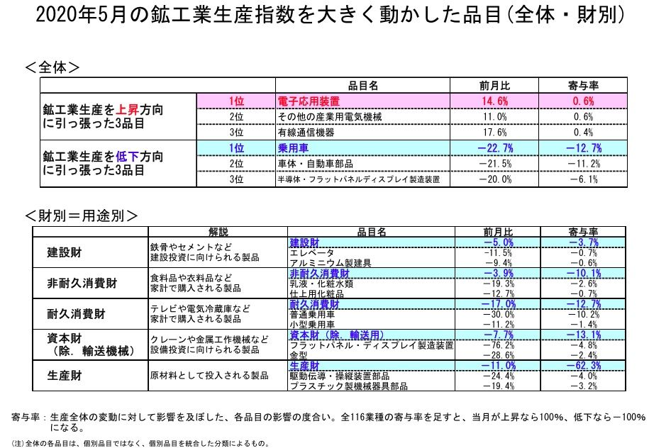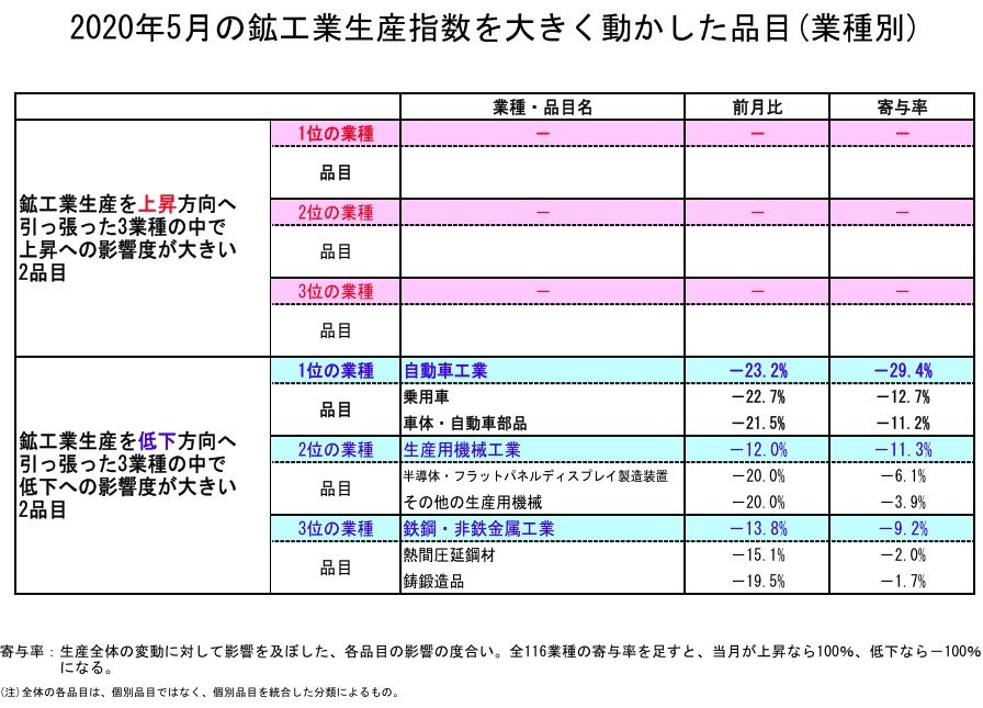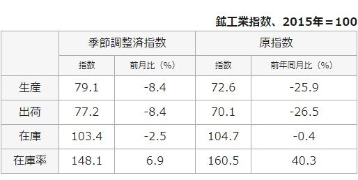 5月の鉱工業生産・出荷・在庫指数は下記の通りで、