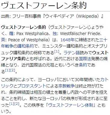 私たちは1648年のウエストファリア条約のような