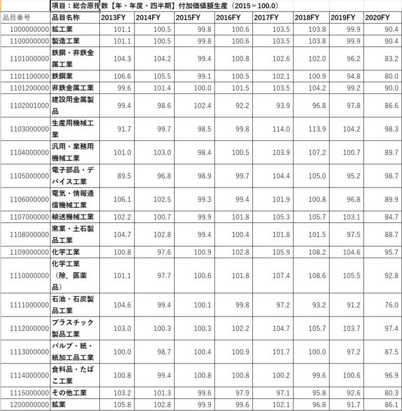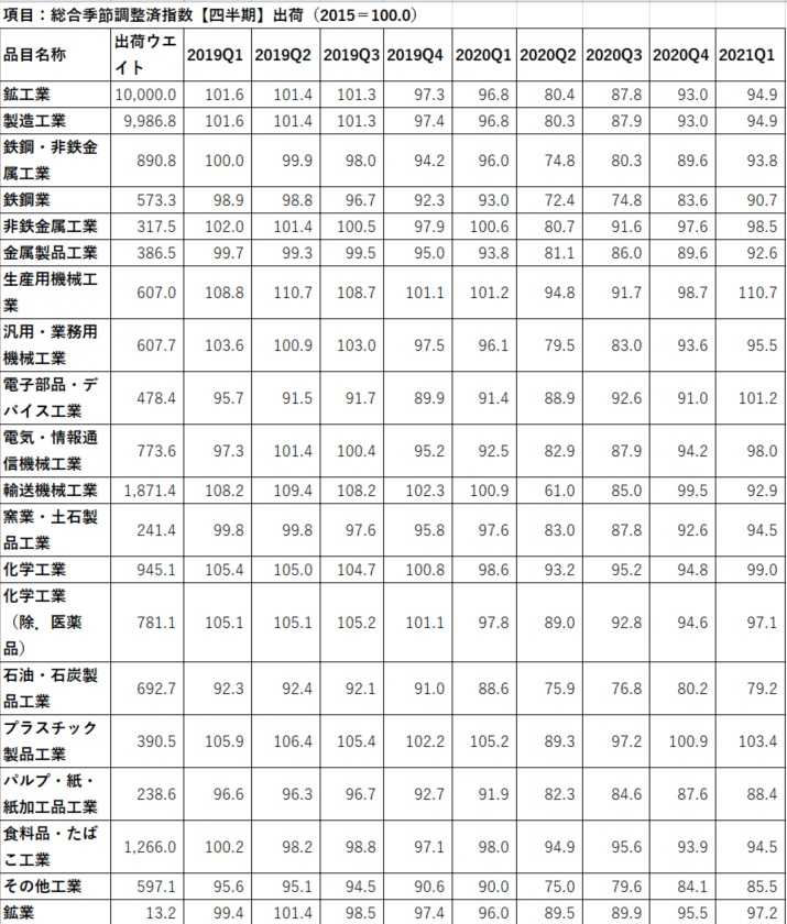 鉱工業と製造工業は同じ動きであり、2021年1~3月期の