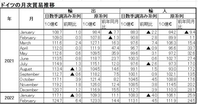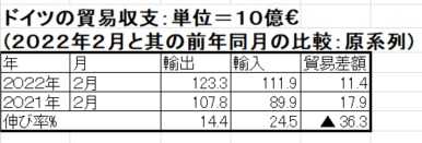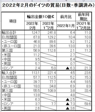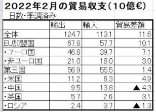 2.ドイツの2022年2月、および1~2月の貿易動向