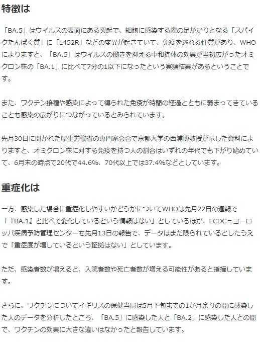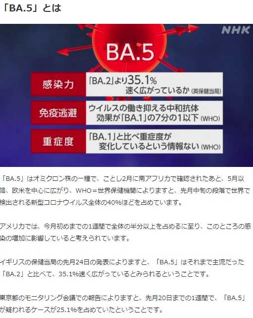 【詳しく】オミクロン株「BA.5」とは 国内でも広がり 最新状況