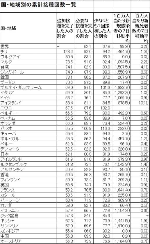 最近の新型コロナウイルスのワクチン接種と感染・死亡状況