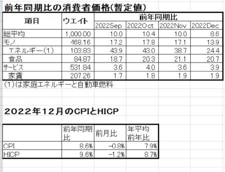2022年12月のドイツの消費者物価指数(CPI)と調和物価指数