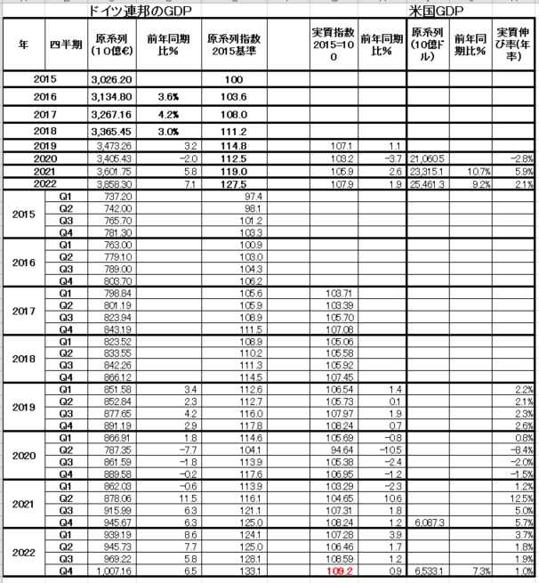 このうち、ドイツ 米国の名目GDP(年率→四半期DATAの前年同期比)