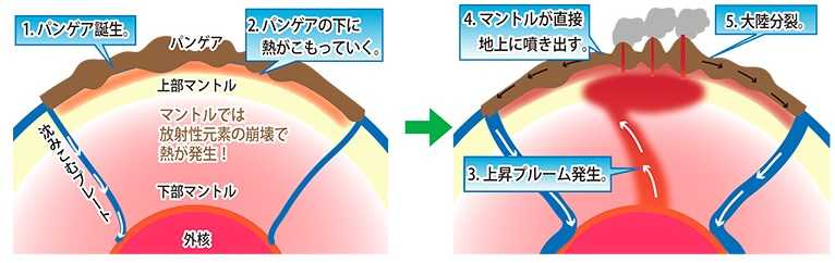 地球パンゲアの分裂のメカニズムの説明