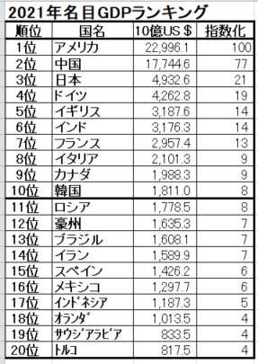 世界の2022年名目GDP比較(試算)