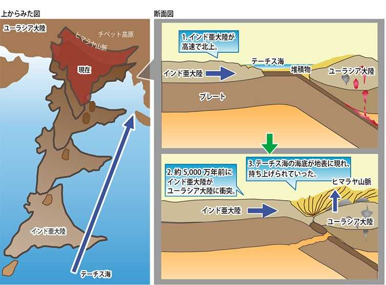 インド亜大陸がユーラシアプレートに衝突した現象 ​​​ ​​ ​​