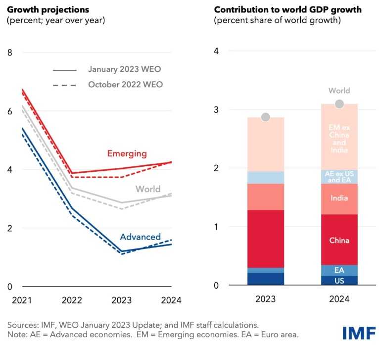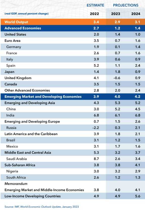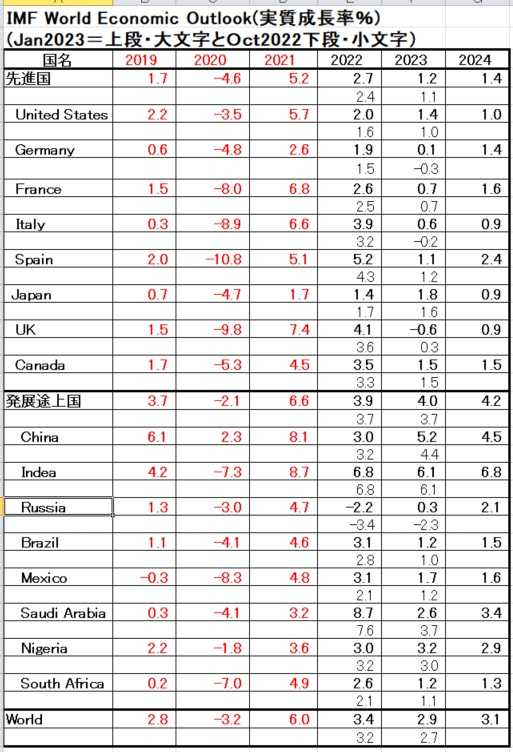 <国別の実質経済成長率の2022推計と予測:2023Jan>