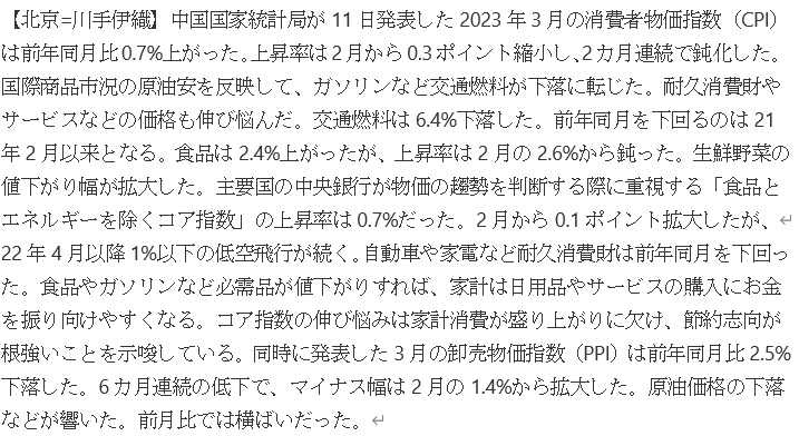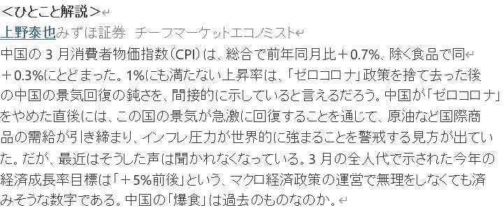 を取る可能性が高まっている。世界的な物価高騰とは対照的に、中国では消費、産業セク