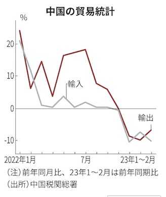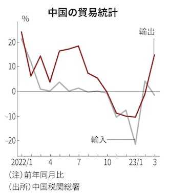 【北京=川手伊織】中国税関総署が13日発表した2023年3月