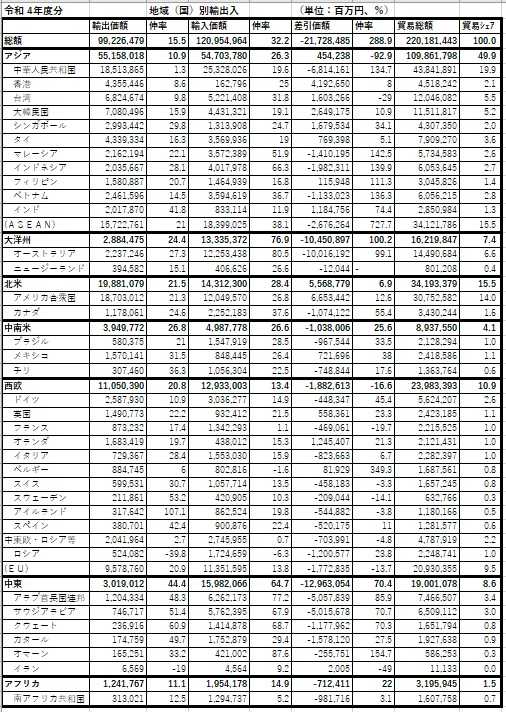 貿易赤字 地域・