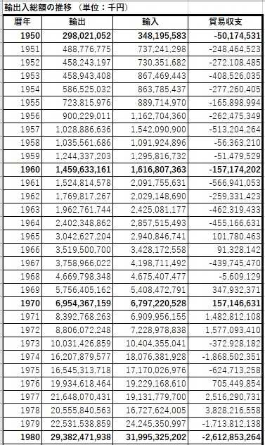 1.歴代の貿易赤字では