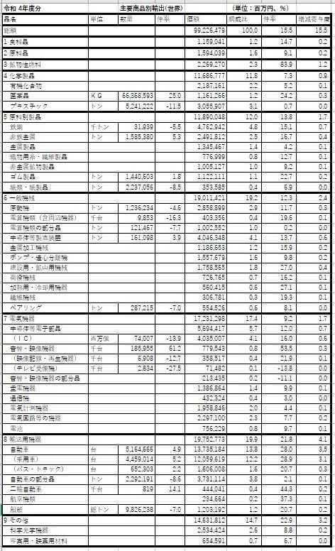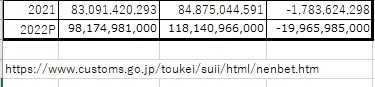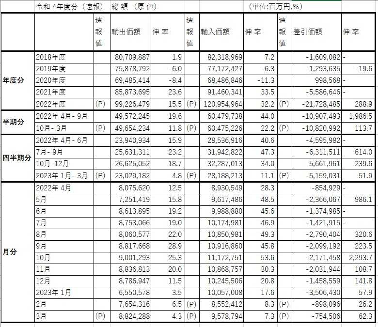 貿易統計の2022年度(2022/4~2023/3)の