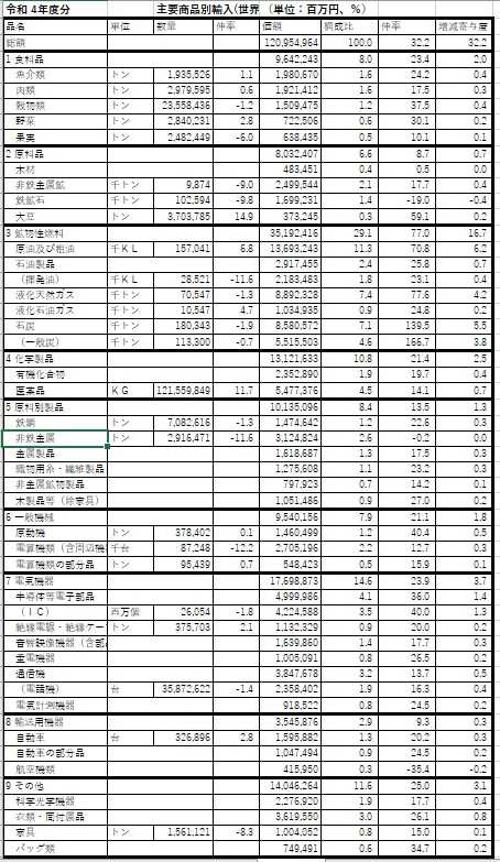 4.「輸入」の伸びた品目