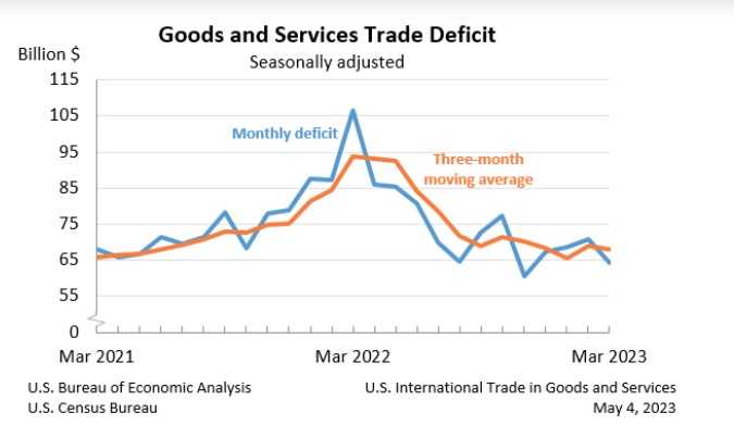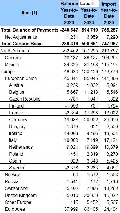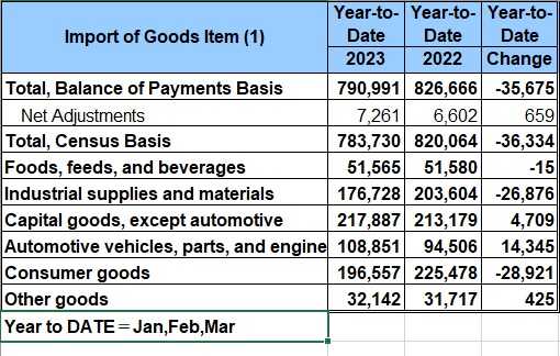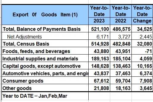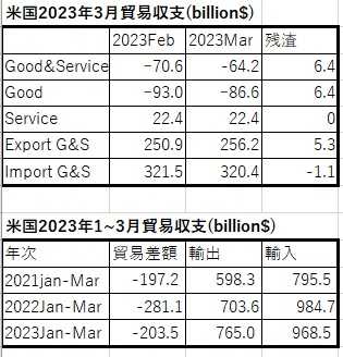 米国の2023年1~3月期(=Q1)の貿易額と差額