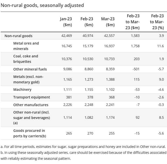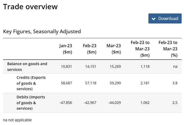 豪州2023年1~3月期(=Q1)貿易収支