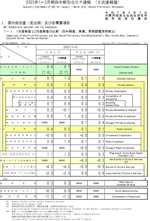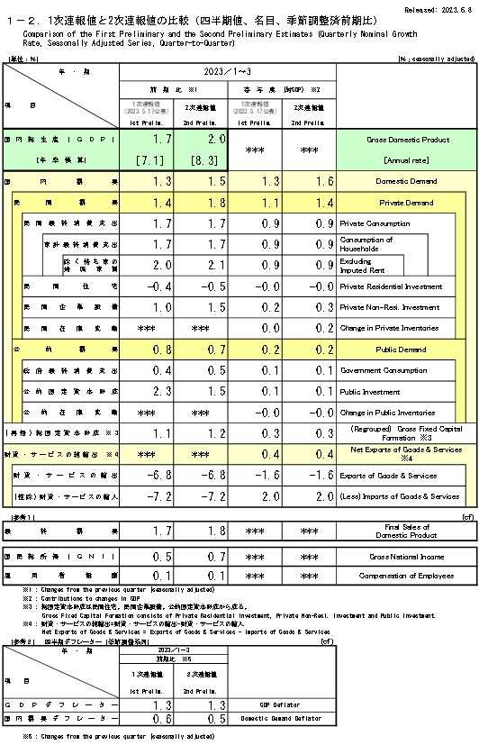 1.2023年Q1期の2次速報改定値