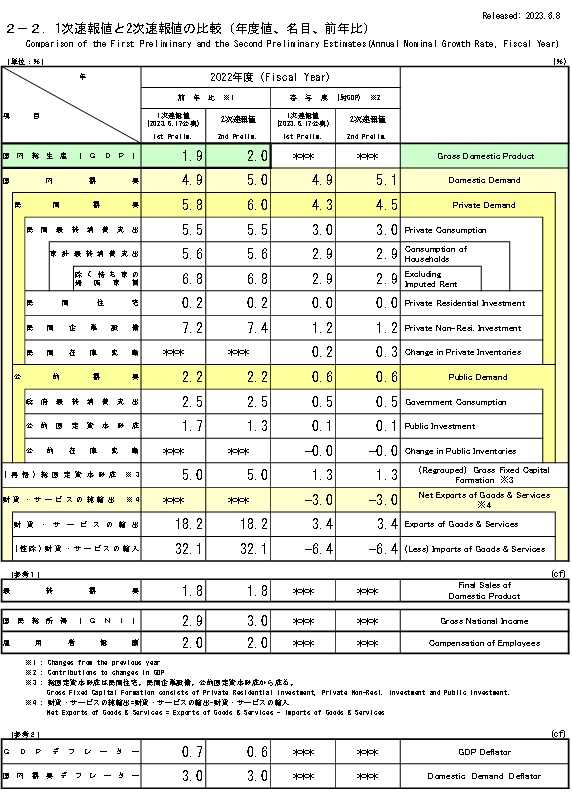 ​​2.2022年度の2次速報改定値