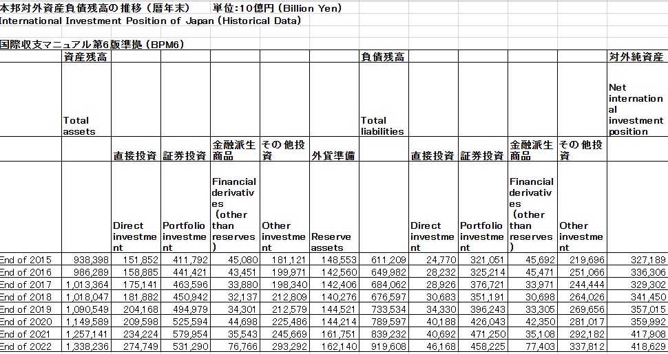 ​3.日本のIIP(単位:10億円)~対外純資産:418.6兆円
