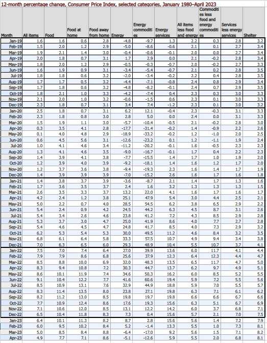 消費者物価指数の伸び率(2019Jan~2023Apr)