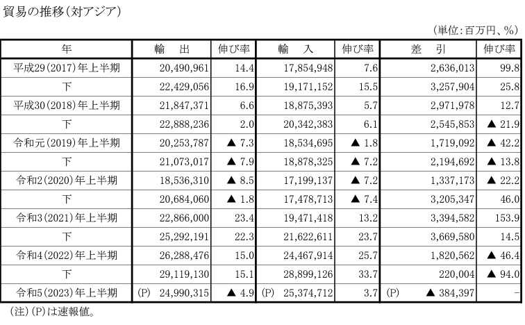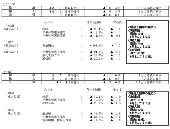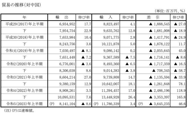 1〜6月をみても中国は8.6%減の8兆1411億円だった。