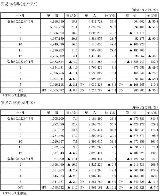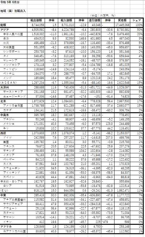 6月は5月の大型連休に輸出が減る反動で輸出額が増えやす