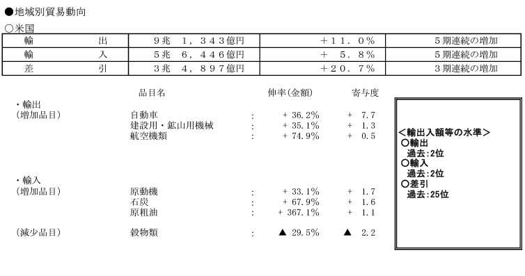 輸出額は米国向けの自動車などが伸び、3.1%増の