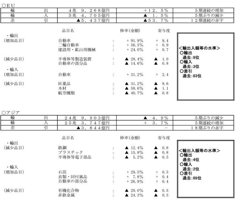 輸出全体は額でみると増加したが数量でみると4.8%のマイナス