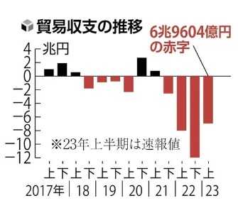 差し引いた貿易収支は、6兆9,604億円の赤字だった。