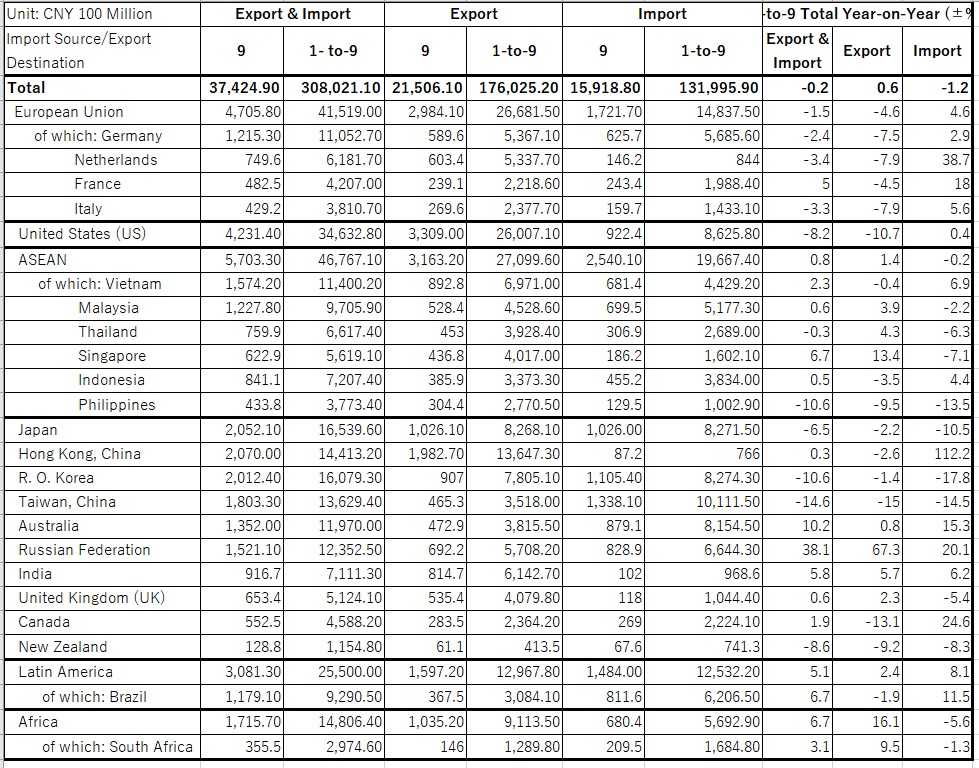 中国の最新版の貿易収支(元表示)の2024… Nov 7, 2024