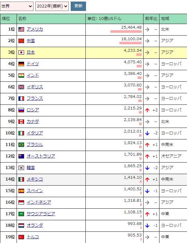 ドル換算で比べると世界1位は米国、2位が中国だ。