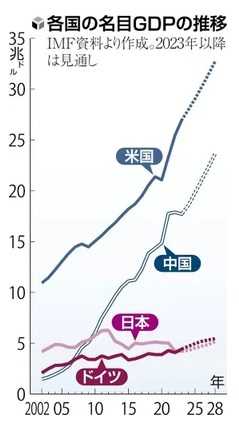 日本の名目GDPは戦後、ドイツを抜き、長らく