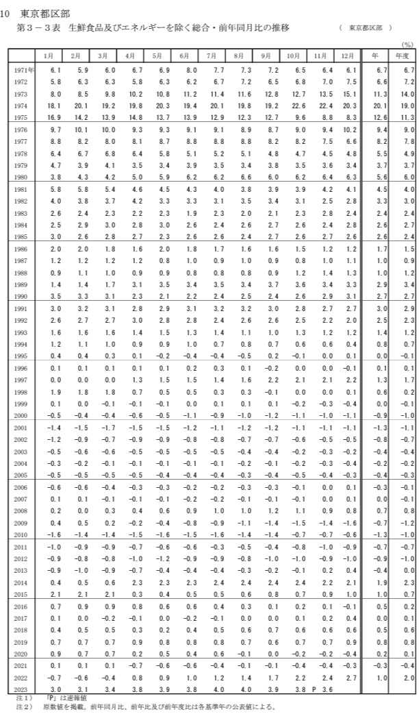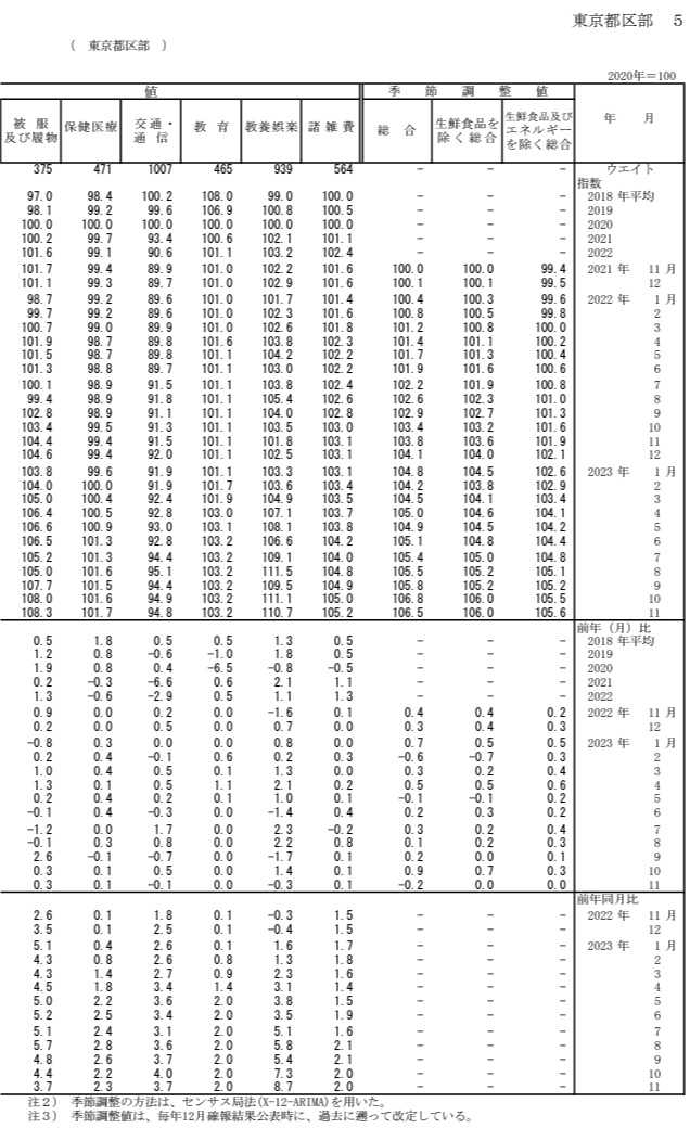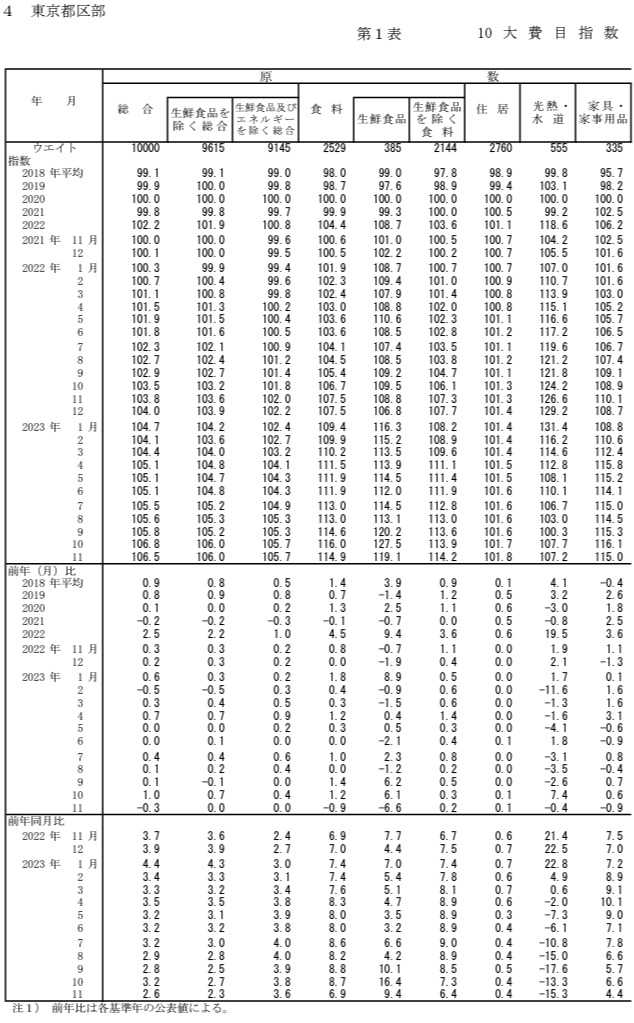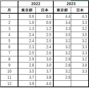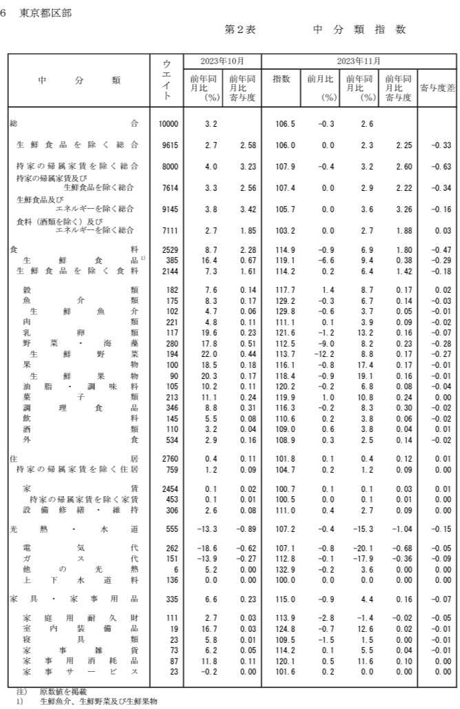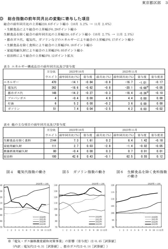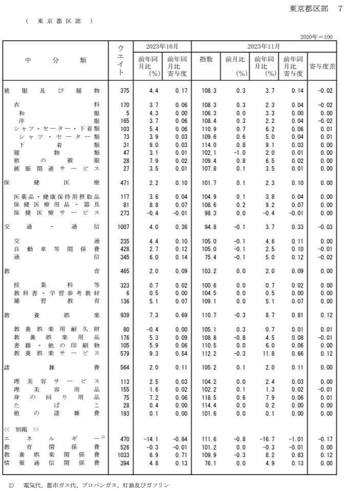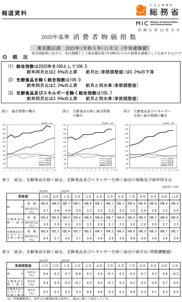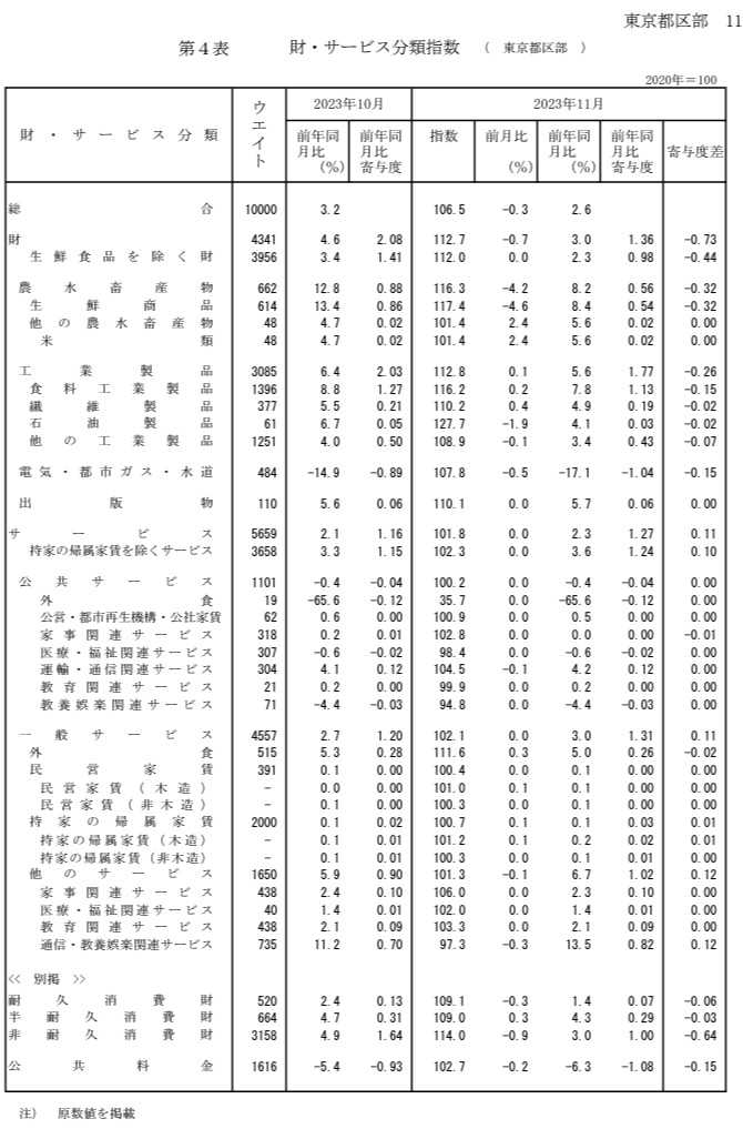 「東京23区 11月の消費者物価指数