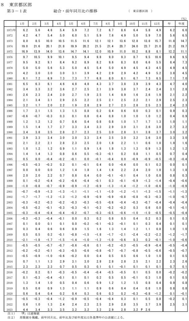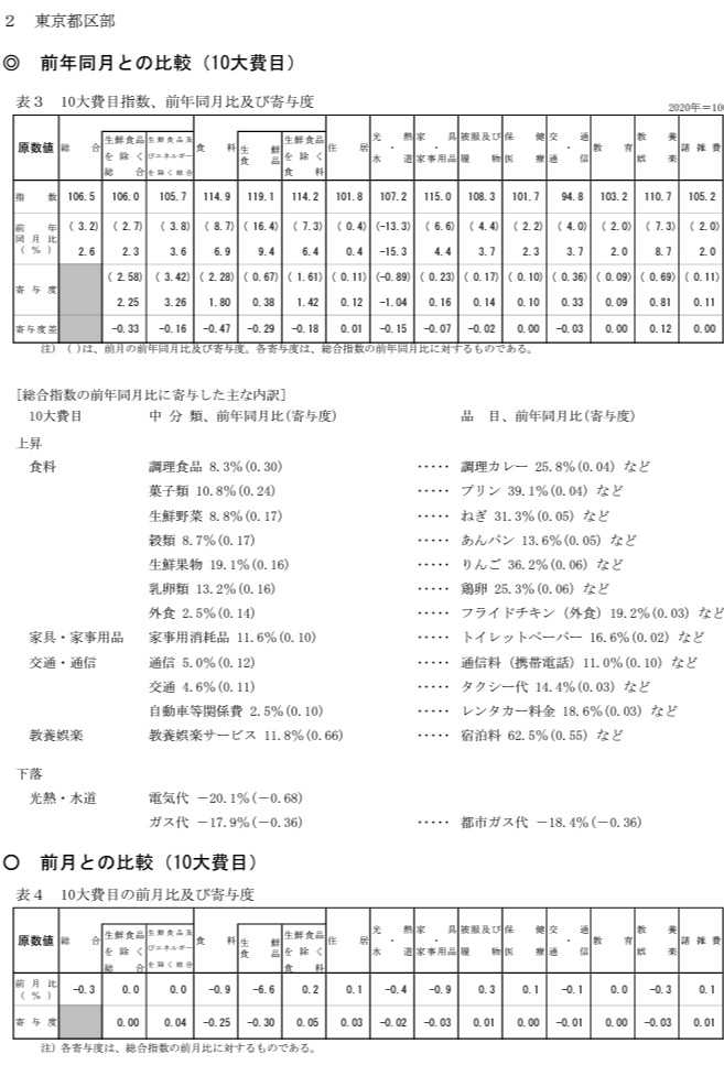 東京都と全国のインフレ率の相違
