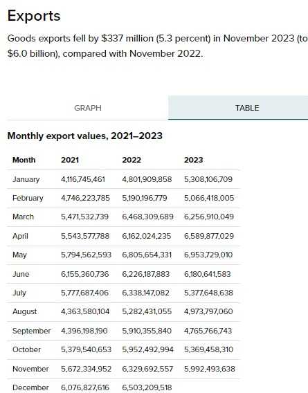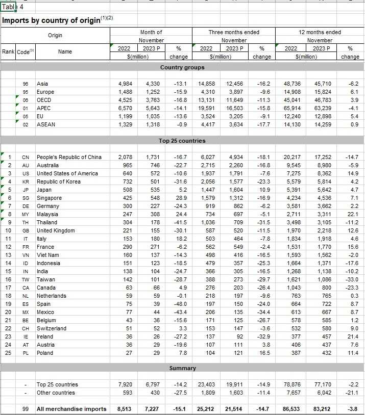 NewZealandの2024年10月の貿易収支 Nov 25, 2024