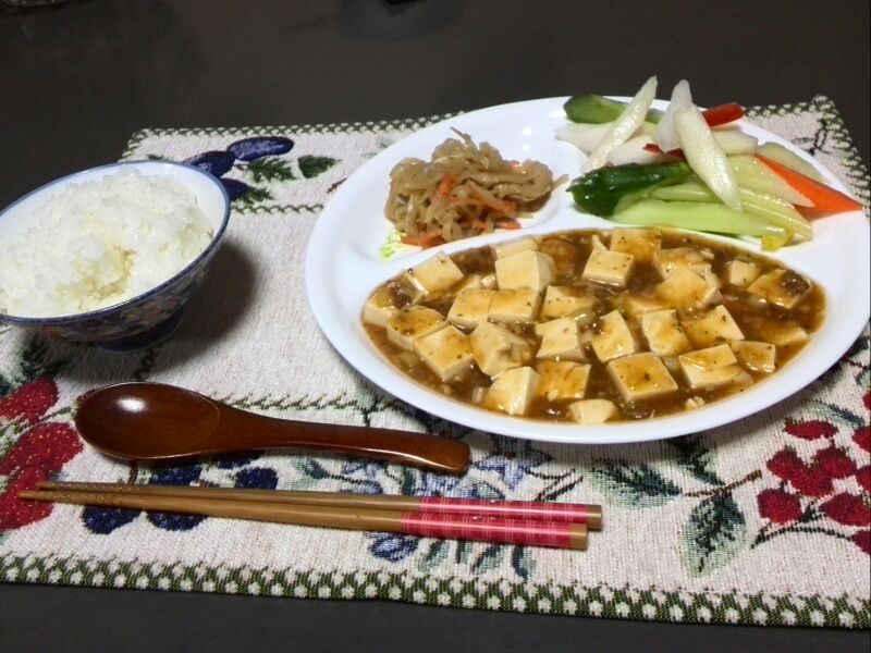 結婚式以来1kgほど増やしてしまった体重がなかなかもどらずにいます><先日の検査でたんぱくが出ていたので体重増加は気になるところですがむくみが出ていないのでなんとか大丈夫かなと思っています。まぁ再発の場合の体重増加はたぶんこんなもんじゃないと思いますしね。。おそらく1日1kgくらいがんがん増えるはず><にしても なんとか1kgもどしたいところですが・・・ってことで今日は麻婆豆腐にしてみました。Cook-doを使ってます。切り干し大根と スーパーで見つけた浅漬け風野菜スティックを添えて♪