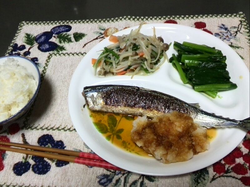 今朝いつもより遅めに起きたとき我が家の周辺は雨もそんなにひどくなく風も穏やかでした。テレビをつけると雨も風もひどく今がピークだとお天気お姉さんが言ってましたが女性が外で中継ができる程度で台風は言われていたほどひどくなかったのかと思いました。それが時間が経つにつれ 各地の被害がニュースで流れ特に伊豆大島ではたくさんの方が命を落とされたとか。被害に遭われた皆様に心よりお見舞い申し上げます。それにしても今年の自然災害は多すぎる。。。そして今日はもうひとつ事件が!カード会社から電話がありどうやらPCに侵入されクレカ情報がぬかれてしまったようです><先日もポイントサイトのメアドとPWが勝手に書き換えられてしまっていましたがあの時に侵入されたのと同一人物でしょうか?どちらも未然に防ぐことができ 使用先を見ると若い人のようですがこれはどうやって防げばいいんでしょうね。。。台風が去った後 ダンナの用もあり買い物に行くとサンマが安かったので今日はサンマにしました。つるむらさきもあったので 今日もおひたしはつるむらさきです。