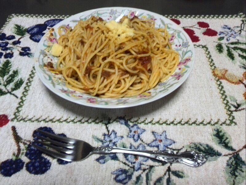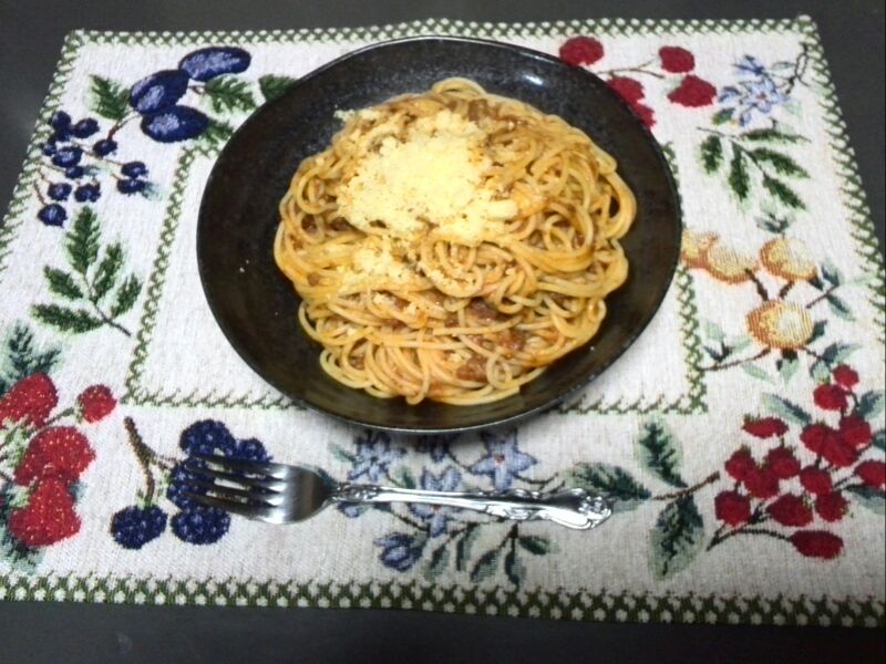 今日はなんとなくスパゲティな気分だったのでレトルトですがボロネーゼです。