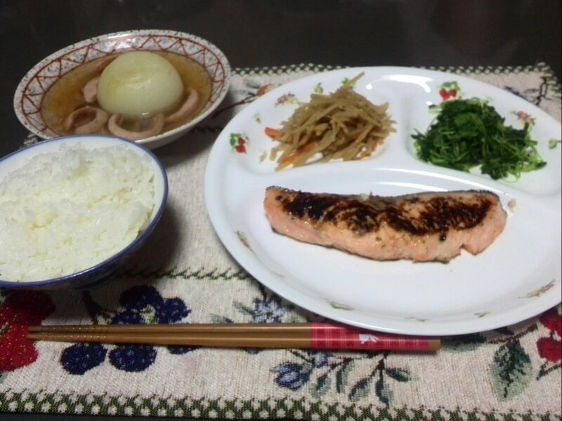 10月の始まりは雨が降ったりやんだりの変なお天気でしたね。今日はアトランティックサーモンの塩麹焼きと丸ごと玉ねぎのスープ煮にしてみました。アトランティックサーモンは90g 塩麹は8gです。この丸ごと玉ねぎのスープ煮 ポリ袋レシピに載っているんですが玉ねぎ1個まるまる食べられてなかなかおいしいですよ♪【送料無料】ポリ袋レシピ [ 川平秀一 ]価格:1,050円(税込、送料込)