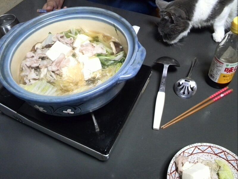 朝晩は涼しくなってきたとはいえまだお鍋が恋しいというほどではないのですよね。麺はそのものに塩分が多いので無塩のもの意外は控えているのですが昨日のトイレとの仲良し事件で なんとなくうどんが食べたくなり。。。どうせならお鍋にして 最後にうどんを入れてしまおうと今日はお鍋にいたしました♪ただ 減塩・・・と思うとうどんを入れるにはちょっと薄かったかなぁ~^^;子供たちがいる頃は 冬は毎日のようにお鍋だったんですけどね^^;そして写りこむ うどん大好きなウチの子♪w