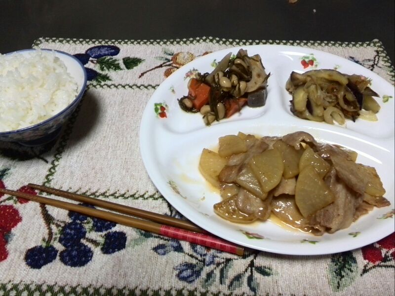 朝は雨で 夕方またかなり本降りの雨が降りましたね。天気予報ではこれからしばらくは晴れが続くようですが当たってくれるといいですねぇ~!あんまり雨続きだと気分まで沈みがちになってしまいます^^;さて今日は昨日もし足りなかったら・・・と用意していた豚バラが残っていたのでまたまた「今日の大皿 豚バラ大根」にしてしまいました♪五目煮となすと玉ねぎの塩麹焼きを添えてます。クックドゥ きょうの大皿 豚バラ大根用 / クックドゥ(Cook Do)★税込1980円以上で送料無料★ク...価格:198円(税込、送料別)