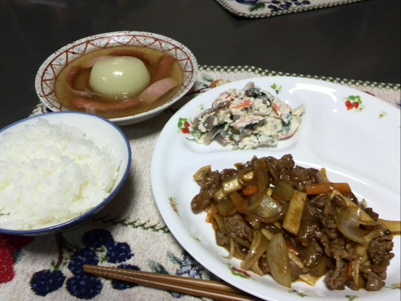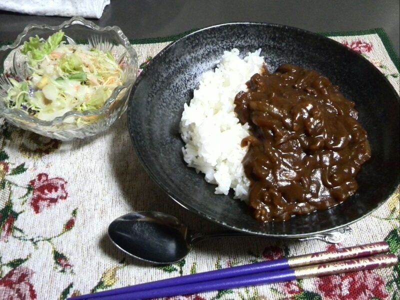 今日もいいお天気で暖かい1日でした。でも明日は午後からくずれるとか・・・でもそろそろおしめりも必要ですよね。今日は日曜日で息子の帰宅日。日が短くなって来たので、息子が帰ってくるのも少し早くなってきました。そして、今日は牛肉があったのでハッシュドビーフです。息子にはやっぱり野菜を食べさせたいので野菜サラダを添えて。