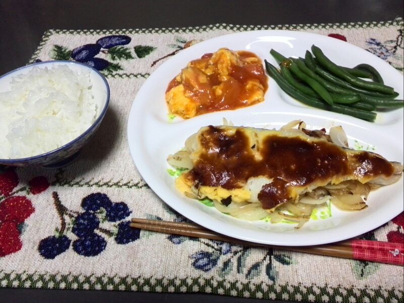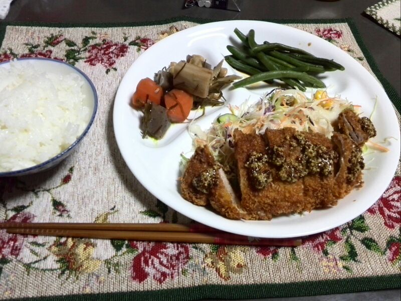 今日は日曜日で息子の帰宅日です。今日は雨も降っておらず、明日は午前中雨だということなので今日は帰ってくるだろうなととんかつにしました。チーズ入りでボリュームありそうですが、実は薄めの生姜焼き用肉2枚でチーズをはさんだのでとんかつにしては控えめです♪