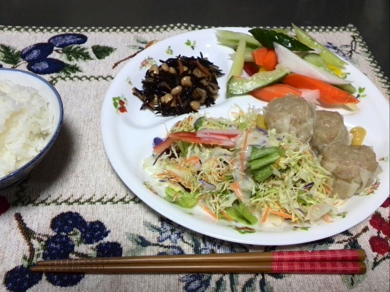 今日も寒い1日でした><一昨日の居酒屋夕食で0.7kg増えてしまった体重。昨日の鮭がよかったのか 今朝は0.9kg減っていました(*^-゚)vィェィ♪で・・・調子にのっておやつにおはぎをいただいちゃったので(´~`ヾ) ポリポリ・・・明日はまた増えているかもしれません(_ _。)・・・シュン今日はちょっとおひさしぶり(?/笑)の四川焼売です。前にも書いたかな?右上のお野菜。「6種の野菜スティック(浅漬け風)」というスーパーのお惣菜なのですがこれがまさに浅漬けだと思うのですが味付けがちょうどよくてちょっとはまってますw冷凍食品 お惣菜 お取り寄せ商品!日本ハム 中華の鉄人 陳建一 四川焼売 10入価格:2,756円(税込、送料別)