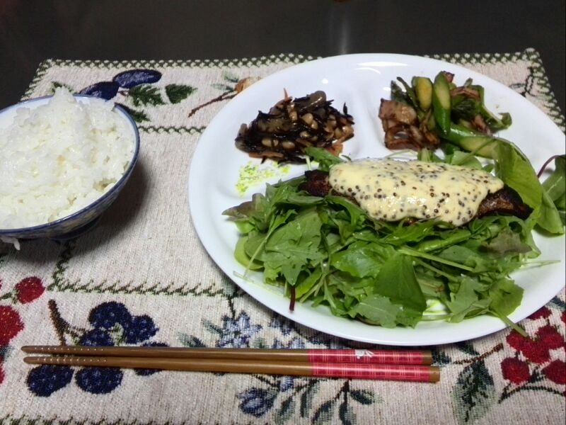 今日も寒かったですねぇ~><ホットカーペットでのお昼寝がとっても気持ちよかったですw昨日は娘夫婦が来て 外に夕食を食べに行ってしまったのでブログ更新できませんでした^^;婿殿が酒好きなウチのダンナに気を遣ってくれたのかはたまたいろんな料理が食べられるからなのか居酒屋に行きたいと言うので 居酒屋での夕食となったわけですがカロリーも塩分も気にせずにいただいたら今朝の体重が0.7kgも増えてさーーーー大変!^^;また節制しなければーーーー!ヽ(`⌒´メ)ノそして今日はお友達に教えてもらった秋鮭のマヨネーズソースです。鮭に塩麹をぬってしばらくおき、小麦粉を振って焼きます。それにマヨネーズと粒マスタードを混ぜたものをのせるだけなのですがこれがおいしかった♪下にたっぷり敷いたベビーリーフもマヨネーズソースでおいしくいただけました。つけあわせはブロッコリーやジャガイモもおすすめだそうです♪