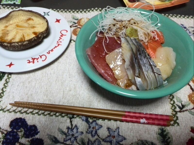 天気予報で言ってた通り、今外ではすごい風が吹きまくってます。こういう予報だけは当たるんですよね。。。( ̄m ̄〃)ぷぷっ!昨日書こうと思っていて、すっかり忘れてしまったんですが(´~`ヾ) ポリポリ・・・10月5日に結婚式をあげた娘夫婦が昨日やっと新婚旅行に出かけました。婿殿の仕事の都合ですぐに行けなかったんですが・・・なんと上司から許可が出たのが先週の始め@@「来週新婚旅行に行ってもらう予定です」新婚旅行ってもっと時間をかけていろいろ検討して決めるものだと思ってたんですがこんなにギリギリになってもちゃんと申し込めるものなんですねぇ~!さすがにいくつか妥協した点もあったようですが彼のご両親もウチのじじばばもわたしたちも 事情を知っているだけに「行けてよかったねぇ~」っていう感想です^^;金曜日に戻ってくるらしいので お土産話を楽しみにしたいと思います^^そして今日は お刺身が安かったのと明日蓄尿する予定なので お刺身のっけ丼(?)です。そして大分に行っている母から立派なしいたけが届いたので焼きしいたけにしていただきました。おいしかったぁ~♪しいたけの大きさ わかりますか?w