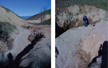 先週末、Chipの散歩がてらに行ったハイキングコース。以前住んでいたLoma Linda市の丘にあり、ここRedlands市の隣。一部ハイキングコースが無くなっていてびっくりと言うのも、昨年のクリスマス前後に降り続いた長雨による土砂崩れの為丁度その時、私達はコロラドへ経ち、ニュースでは見ていたものの、こーして間近でみると...ハイキングコースをはさんで左側と右側左の中央、黒い部分は泥水。以前はただのだだーっ広い穴。大きさは約50m×100m×深さ25m程。雨の災害に備えて深~く掘られた穴が今回見事に役目を果たしたってわけ。右は土砂崩れでハゲ山状態でもここのコースは既に作業済みで、当時の土砂は全て片側に積み上げられていた。歩き続けるとコースは無くなり「溝」すなわち崩れ落ちた土砂が流れたあと左その溝を歩き、少し上ると、なんと溝の深さはご覧の通り右 想像を絶する、もの凄い雨と土砂だったことか.....雨は約1週間程降り続き、洪水、浸水、被害も多々。降水量は、約2年間分に当たるとか。今週は70°F(21℃)以上の日々、時には80°F(27℃)以上で春と夏が一緒にやってきたようなお天気このまま、穏やかな天気が続いて欲しいな~っ!(興味のある方はこちらこの丘から街に流れる土砂の様子)