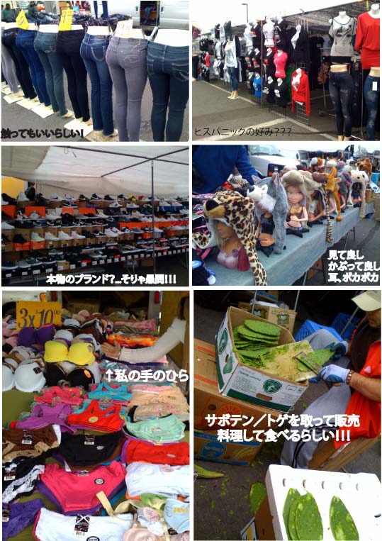 カリフォルニア最大最古の FreeFlea Market (Swap Meet)場所は我が街Redlandsから車で約40分、約30miles (48km)西のオンタリオ市。入場料は一人50セント。入口付近はきちんとしたブースで区切られたお店がずらーっと並び、思わずフリーマッケットタウンと言いたくなる程。洋服、アクセサリー、サングラス、シューズ、電化製品、玩具、バッグ、日用雑貨、野菜果物、家具...etc.さて、曇り空の肌寒い中を歩き回った後は.....ラーメンベトナム料理:Pho(フォー/ファー)Huzby(奥)は即トッピング(もやし、ミント、ハラペーニョ)、HOISINソース、豆板醤、ライムを絞っていつものお好みの味。私は(手前)トッピング少々まずはそのままのスープで、そしてHOISINソース、豆板醤、ライム徐々に加えて、味の変化を楽しみ、体の芯から暖まりました。美味しかった~けどいつも食べ後が苦しい麺は米粉=どんぶり飯を平らげたのと一緒年末年始食べ通し...ダイエットしなくちゃ